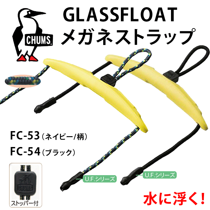 郵送なら送料無料!水に浮くメガネストラップ♪【CHUMS GLASSFLOAT グラスフロート(チャムス フローティングリテーナー)ユニバーサルフィット 全2色(FC-53、FC-54)】マリンスポーツに大活躍のメガネストラップ(メガネチェーン)メガネの落下防止に★